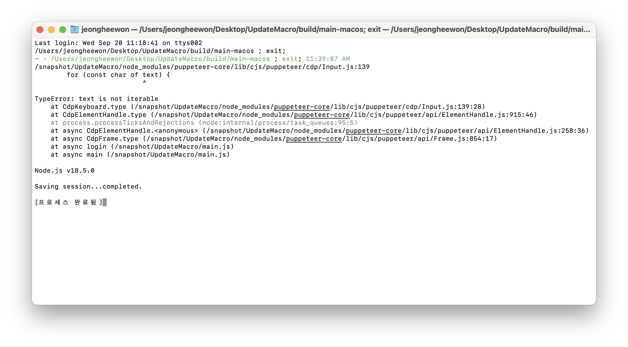 - 그런데, 실행해보면 아래와 같은 에러가 발생합니다.